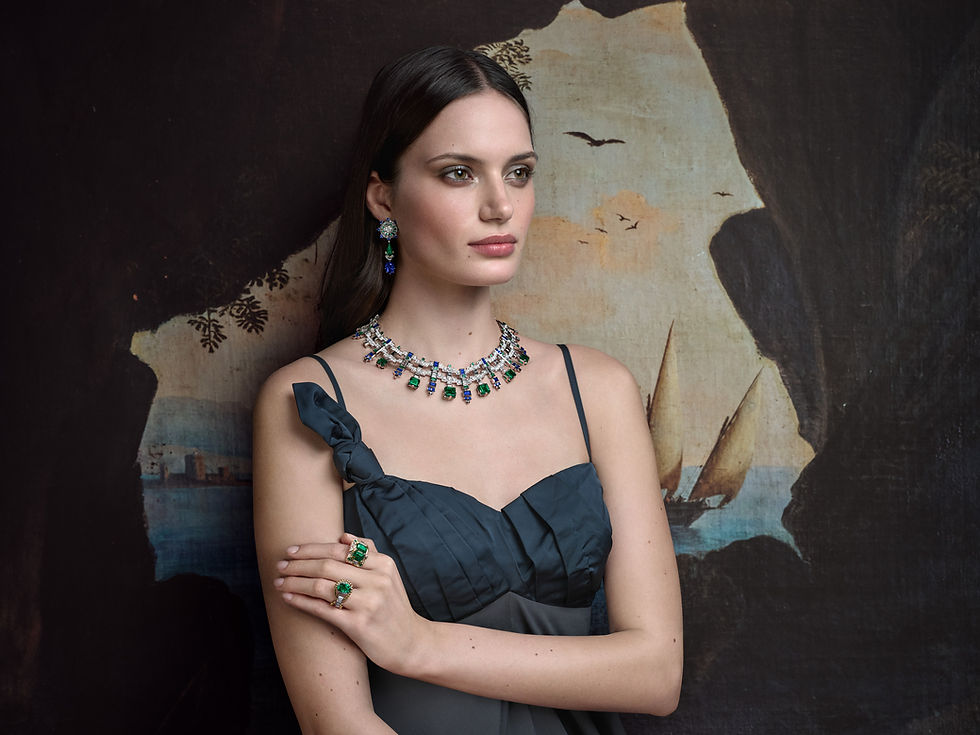 The Maison reinforces its signature techniques, Traditional Mystery Set, transformability, articulated structures, while integrating rare gemstones at scale. Emerald cabochons exceeding 40 carats, jadeite beads nearing 1,000 carats collectively, and sapphires surpassing 55 carats position the collection within the highest tier of High Jewelry production.